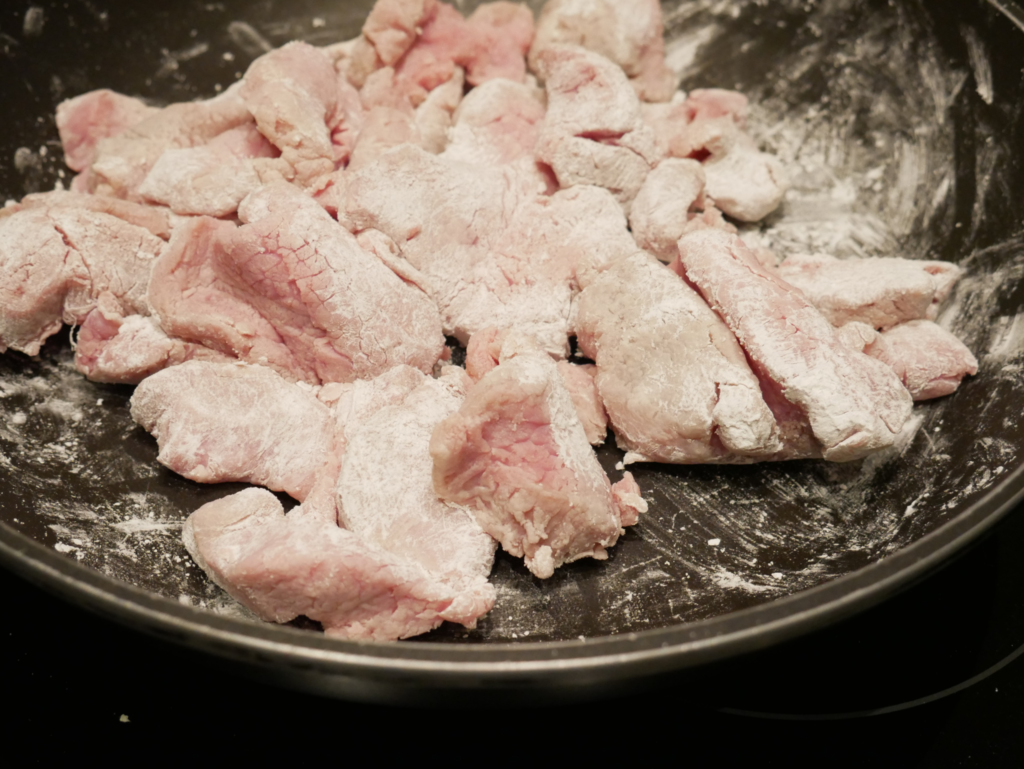 LE BIG SECRET de la recette: mettre la viande de veau dans de la farine de maïs avant de la mariner!
