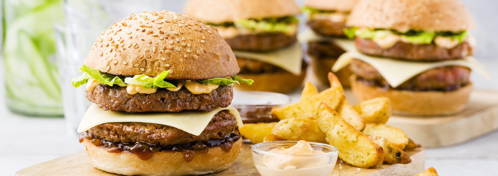 Ideaal voor op de grill, de barbecue, jong en oud, winter en zomer… wie houdt er niet van een sappige hamburger op een krokant broodje met groenten? Vraag je beenhouwer om raad voor de perfecte mix & match. Wist je dat we ook de juiste sausjes in huis hebben?